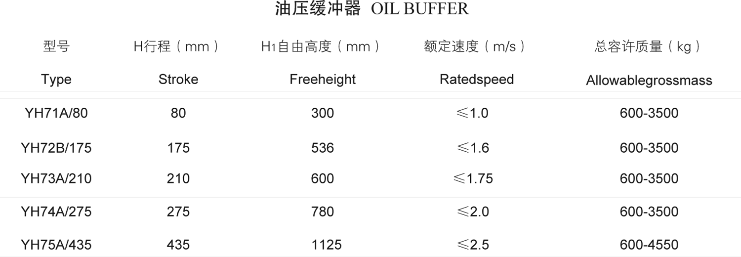 YH71A-YH75A型油壓緩衝器